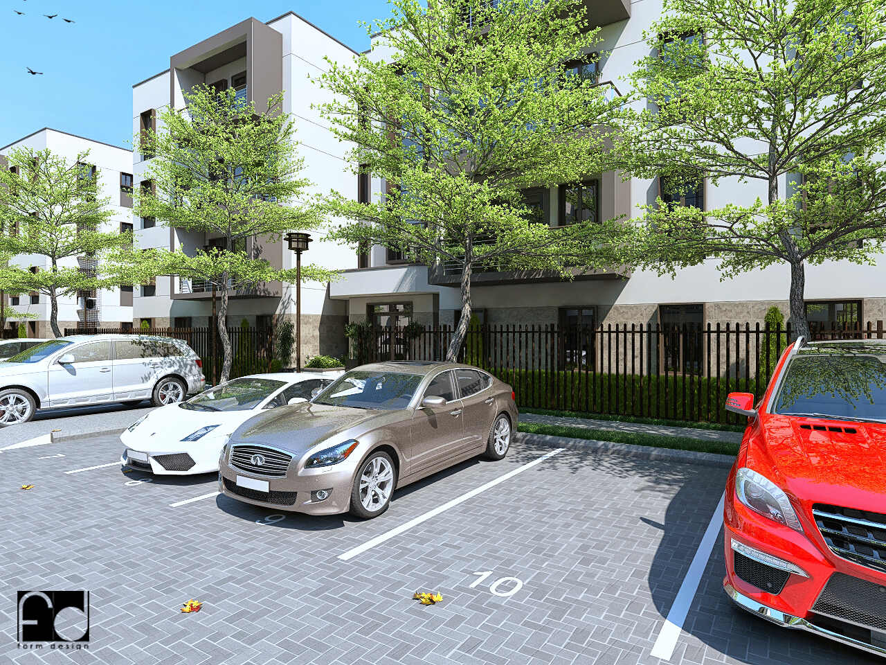 - Large parking area